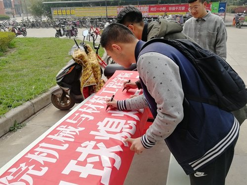 五食堂门口,同学们积极在签名海报前集体留影、签名,表达了保护环境的决心。阳光明媚,清风微拂,同学们在团委学生会外联部和小红帽志愿者队各部长的带领下,热烈讨论着两会环保热点话题,向来往同学科普环保小知识,以提高学生环保意识,培养同学们奉献社会的责任感。最后,团委学生会外联部及小红帽志愿者队全体成员和参与前来签名的同学一起在签名墙前合影留念,并喊出“熄灯一小时,燃亮生态未来”的口号。