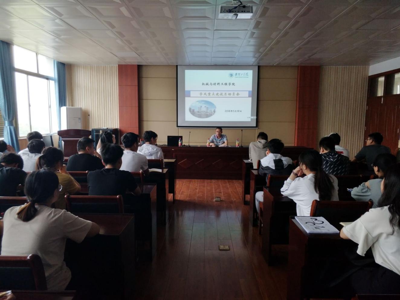 为进一步推进学风建设,营造良好的育人环境,帮助学生牢固树立社会主义核心价值观,自觉弘扬践行校训和淮工精神,努力提高学生的文明素养,机材学院于5月18日在15401会议室召开以“创建文明校园,培育一流学风”为主题的学风重点建设月动员大会,大会由学工办主任郁大同老师主持。