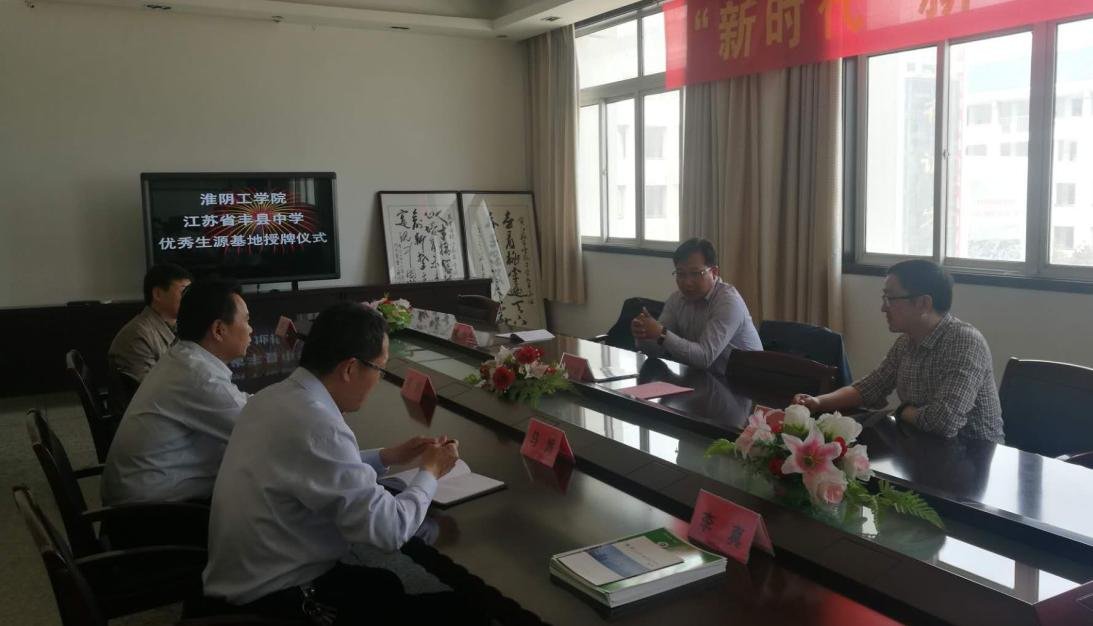 丰县民族中学董正堂副校长和高三年级郭宝林主任与我校党委宣传部侯兴祥副部长、机械与材工程学院李炜副书记一行进行了深切交流,并举行了生源基地授牌仪式。