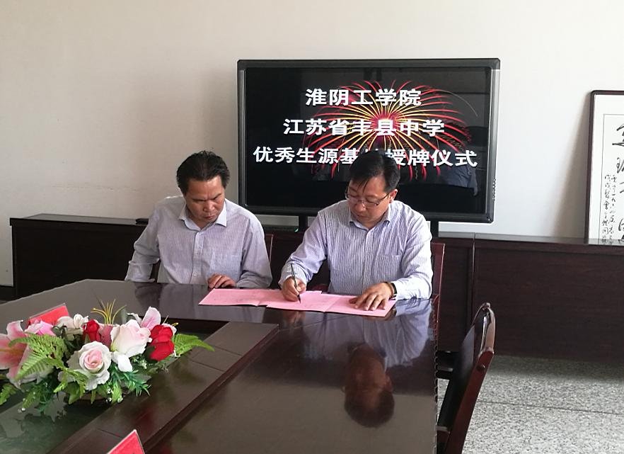 江苏省丰县中学程煜校长与我校签定优秀生源基地协议并举行授牌仪式。