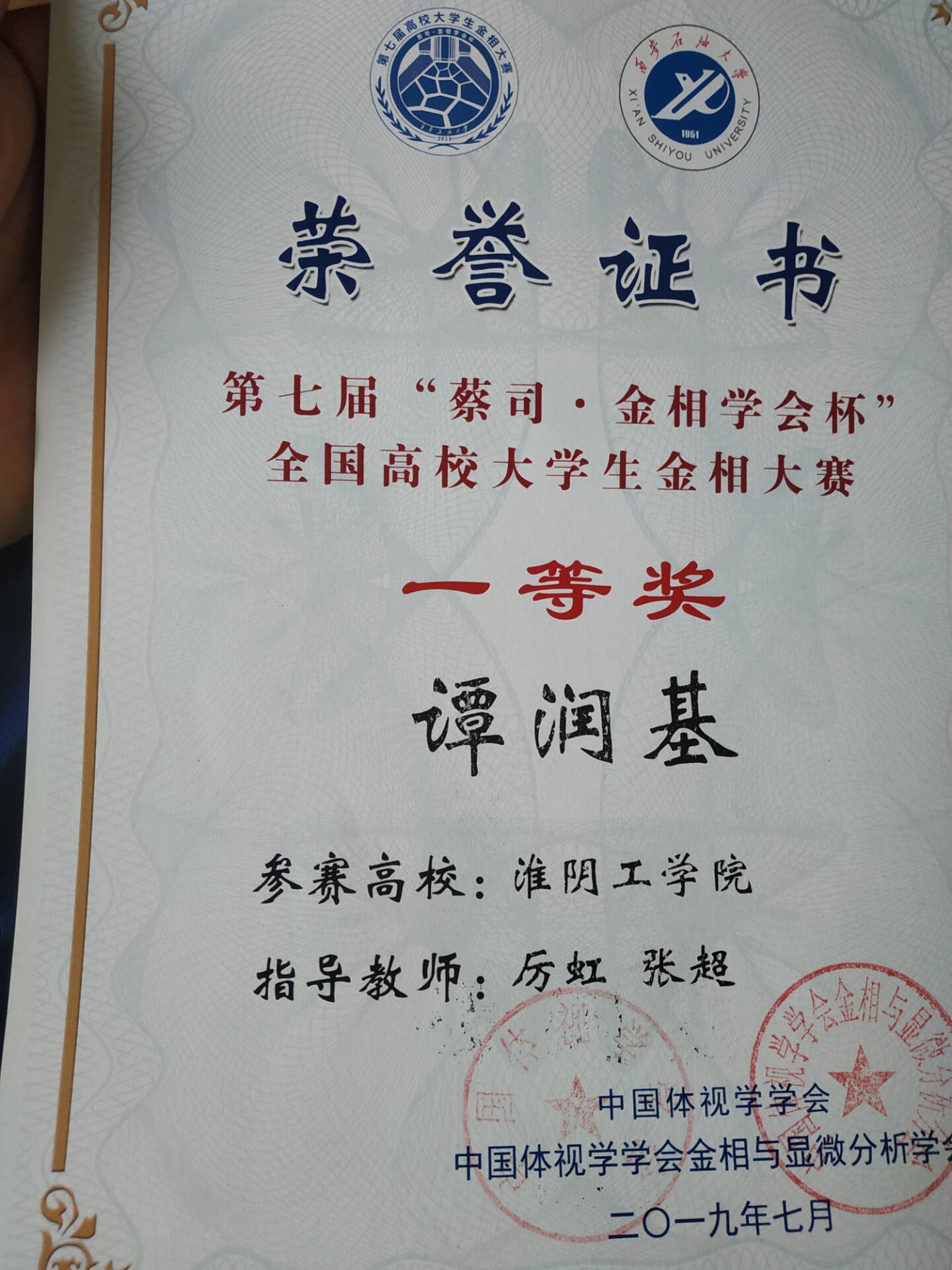 2019年7月12日至15日,第七届“蔡司·金相学会杯”全国高校大学生金相大赛暨第五届“莱州华银·金相学会杯”全国高校大学生材料综合技能大赛在西安石油大学举行。本次大赛由中国体视学学会主办,西安石油大学承办,吸引了包括华中科技大学、四川大学、中南大学、厦门大学、南京理工大学、中山大学、江苏大学等在内的全国85所高校400余名师生参加。