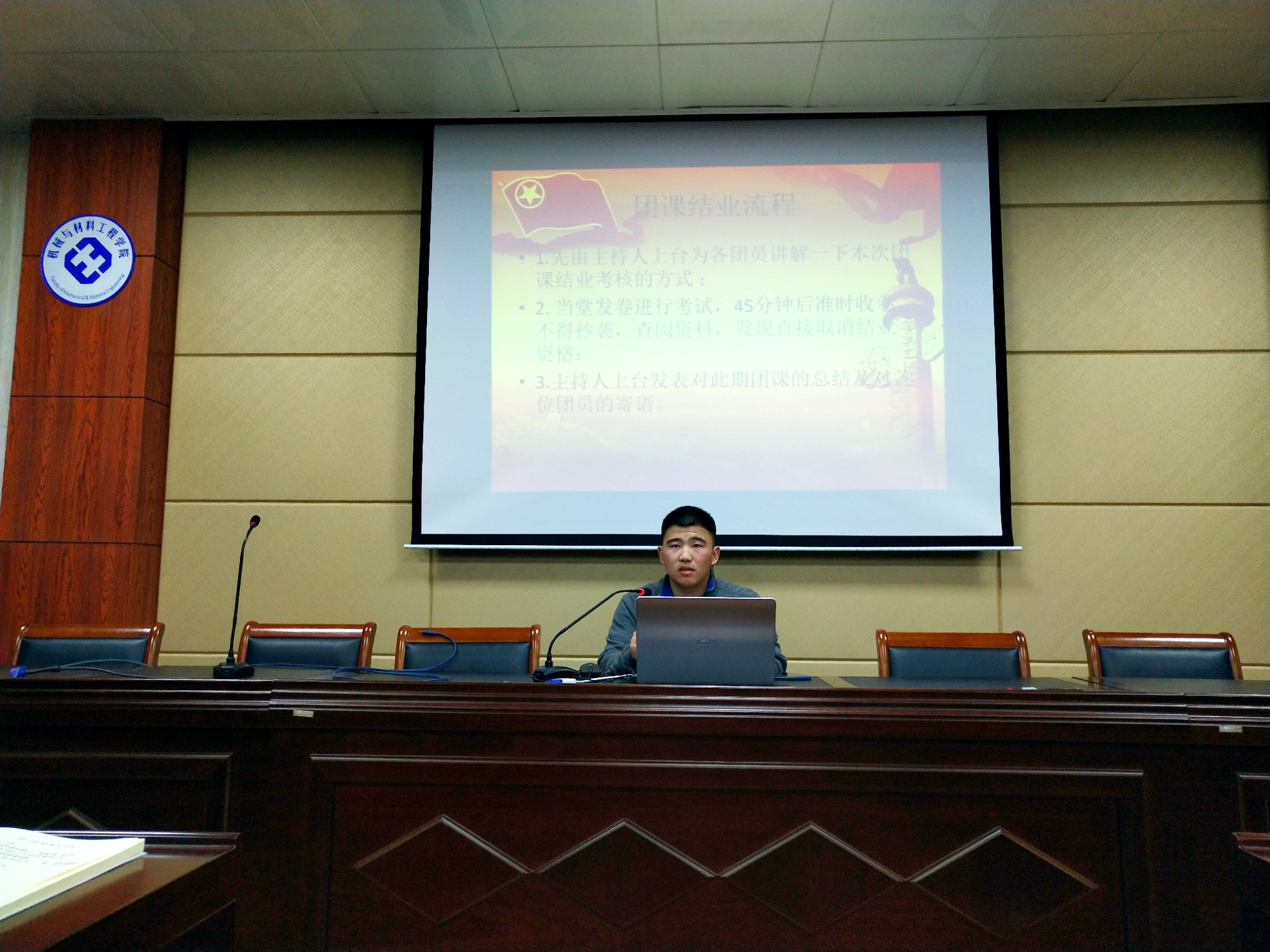 由学院党委副书记李炜带领团员学习党团基本知识;徐亚洲老师为团员讲述了共青团与党的关系;郁大同主任以奋斗青春为口号为同学们分析了当下的就业形势,希望同学们能够奋发进取,成长成才;郭巧会老师勉励广大学生干部摆正身份,提高素质,为争做优秀学生干部而不懈奋斗努力;团校办公室承办的新思想公开课结业交流,团员们在交流公开课学到的党团知识的同时,更是进一步了解十九大的精神内涵,励志奋发进取争做优秀的共青团员,紧紧团结在党的周围。