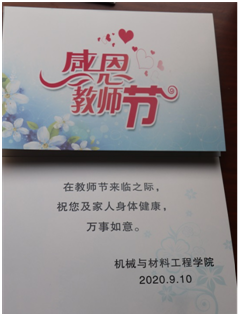 9月9日下午,学院在15401会议室召开全体教职工大会。学院党政班子成员向全体教职员工送上教师节祝福,以及精美的教师节贺卡。