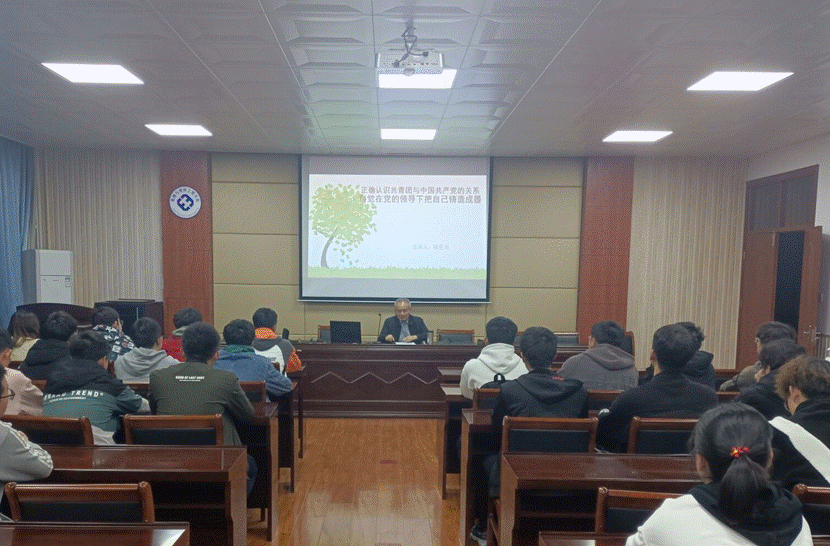 徐亚洲老师以中国共产党与共青团的关系为中心,从“共青团是中国共产党领导下的群团组织”、“不断强化接受党的领导观念”、“努力把自己铸造成器”三个方面展开。他强调:思想政治上同党中央保持一致,坚持以科学理论作为自己的行动指南,在组织上维护服从党的集中统一领导,在工作上积极参加团组织围绕党的任务而开展的活动,努力把自己铸造成器。