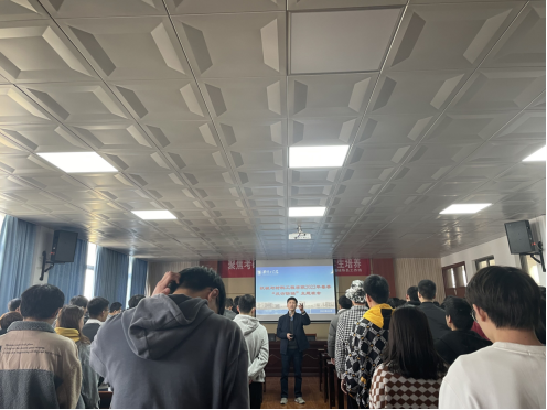马从兵书记从考研意义、面临形势、目标确立、复习计划、学习方法等方面,给同学们进行了充分的动员。王明霞副书记从学院专门设计制作的《学生防范电信网络诈骗教育手册》出发,教育同学们增强防骗意识,守护好自己的钱财。郁大同主任采用丰富的考研案例,指导同学们树立考研信心,坚定目标理想,争取实现梦想。