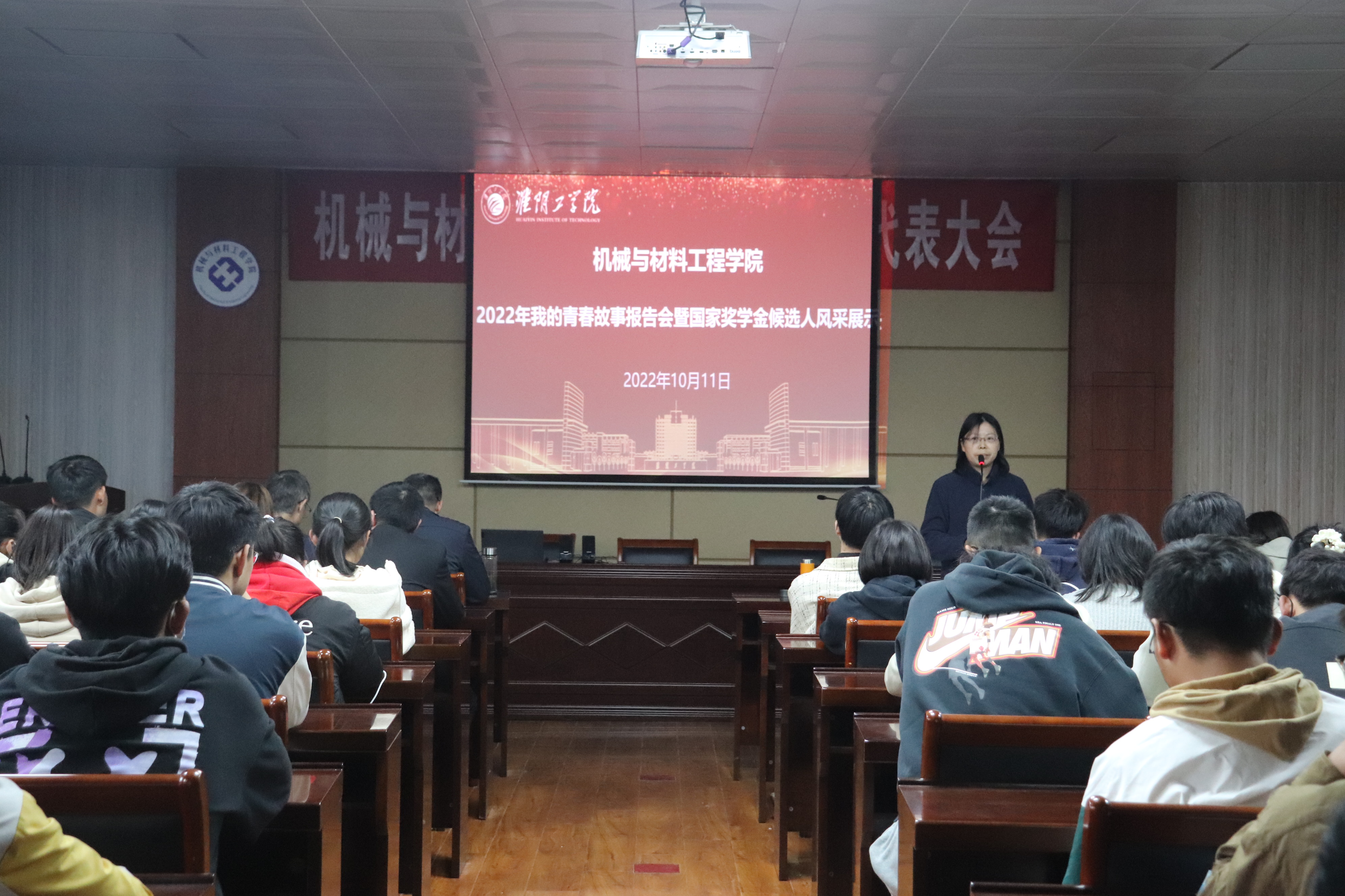10月11日下午4:00,williamhill英国在15401开展我的青春故事报告会暨国家奖学金评审会。院党委副书记书记王明霞、学工办主任郁大同、各年级辅导员,10位国家奖学金候选人以及80余名2021级新生参与了本次会议。