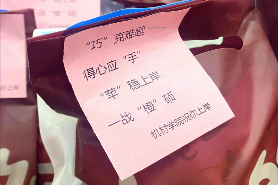 学院领导和20级辅导员将精心准备的考研加油慰问品(“巧”克难题、得心应“手”、“苹”稳上岸、一战“橙”硕)发放到每一位考研学子的手中,暖心的礼品也让在场学子倍感温暖。
