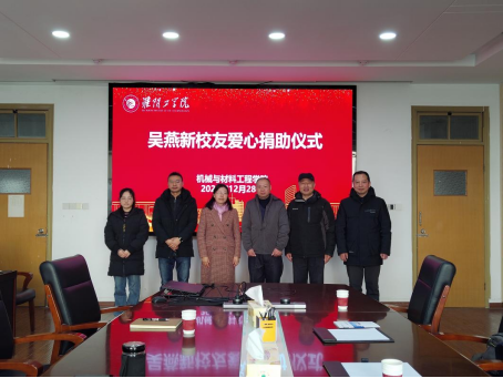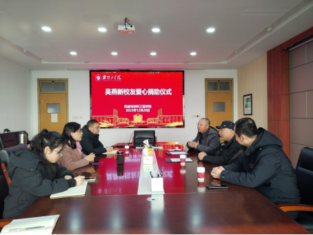 12月28日上午,机自2004届校友吴燕新爱心捐助仪式在卓行楼408会议室举行。吴燕新校友、学院党委副书记王明霞、原机材学院党委书记李建农、程伟教授、学工办主任郁大同、辅导员王全国、纪佳出席仪式,仪式由王明霞主持。