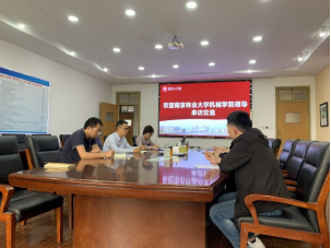 2023年5月18日,南京林业大学机械电子工程学院副院长朱银龙一行来访交流,院长杨权权、副院长权莉等列席研讨。