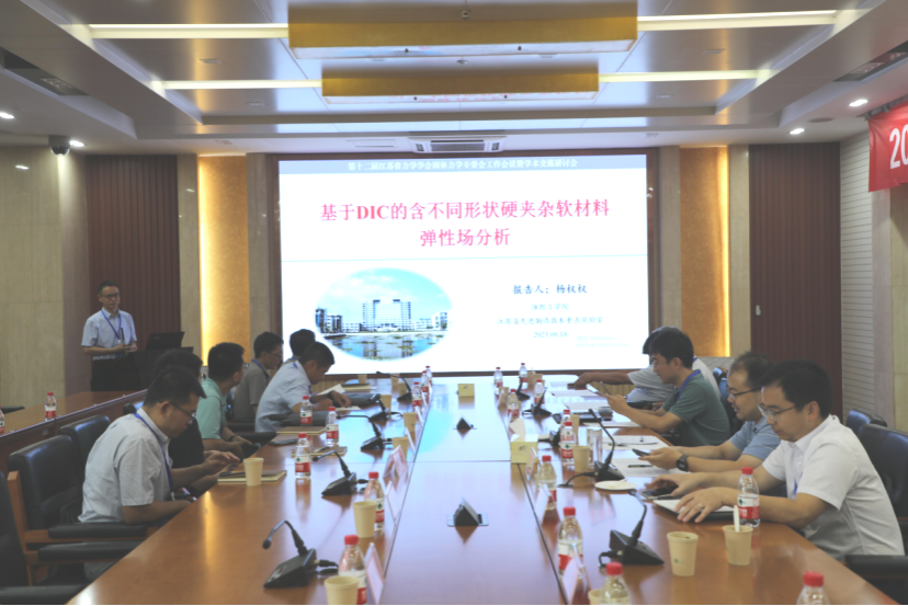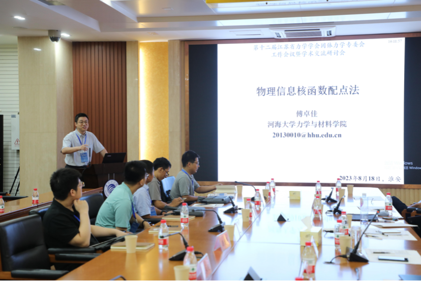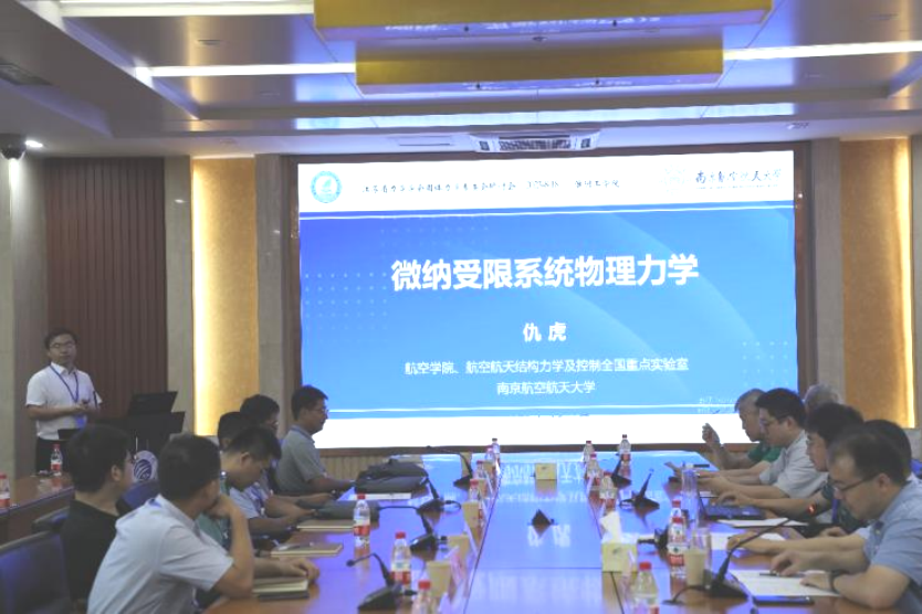 开幕式结束后,南京航空航天大学仇虎教授、河海大学付卓佳教授、浙江大学王冠楠教授、英国威廉集团杨权权教授分别做“微纳受限系统物理力学” “物理信息核函数配点法”、“超重力下的表面张力及液滴浸润现象”和“基于DIC的含不同形状硬夹杂软材料弹性场分析”的学术报告,同与会师生进行了深入交流和热烈讨论。
