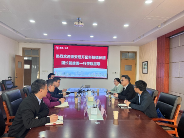 2023年11月6日,淮安经开区科技镇长团团长戴建国、副团长张振、江苏省地质局专家张沙莎,江苏省科协主任科员冯一帆等同志莅临williamhill英国调研交流、指导工作。williamhill英国院长杨权权、副院长陈中、院长助理张秋阳、材料工程系主任董陈等同志陪同调研。