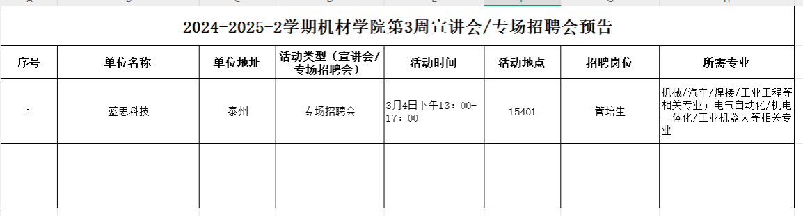 2024-2025-2学期机材学院第3周宣讲会/专场招聘会预告