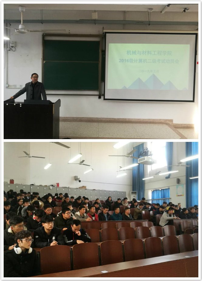 为切实提高我院16级学生的计算机二级通过率,进一步引导学生高度重视计算机二级等级考试,机材学院于3月6日下午在YFJ0203教室召开2016级学生计算机二级动员大会,学院党总支副书记李炜、学工班主任郁大同及2016级计算机二级未通过学生参加会议。