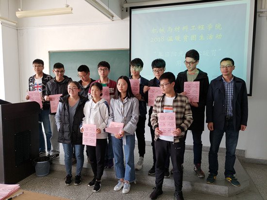本次活动的对象为2017-2018学年第一学期学习成绩优异或曾经获得过国家奖学金、国家励志奖学金,学有余力的家庭经济困难学生。活动过程中,郁大同老师与杜环利老师向获奖者发放送餐券,希望学生们能够学会感恩,回报社会。并向学生们提出殷切的期望:君不见长松卧壑困风霜,时来屹立扶明堂。鼓励大家要努力学习,争取考研成功。