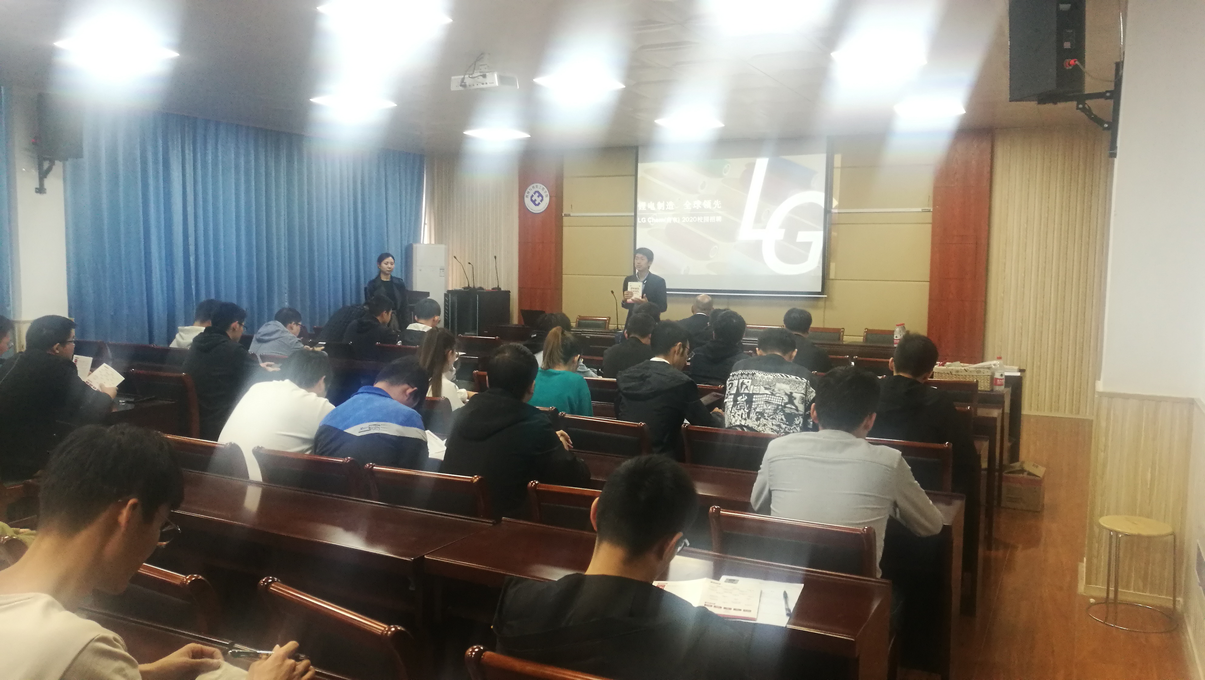 10月31日下午2:00在15401报告厅,机材学院邀请乐金化学(南京)信息电子材料有限公司来校召开专场招聘会,2016级相关专业同学参加会议。