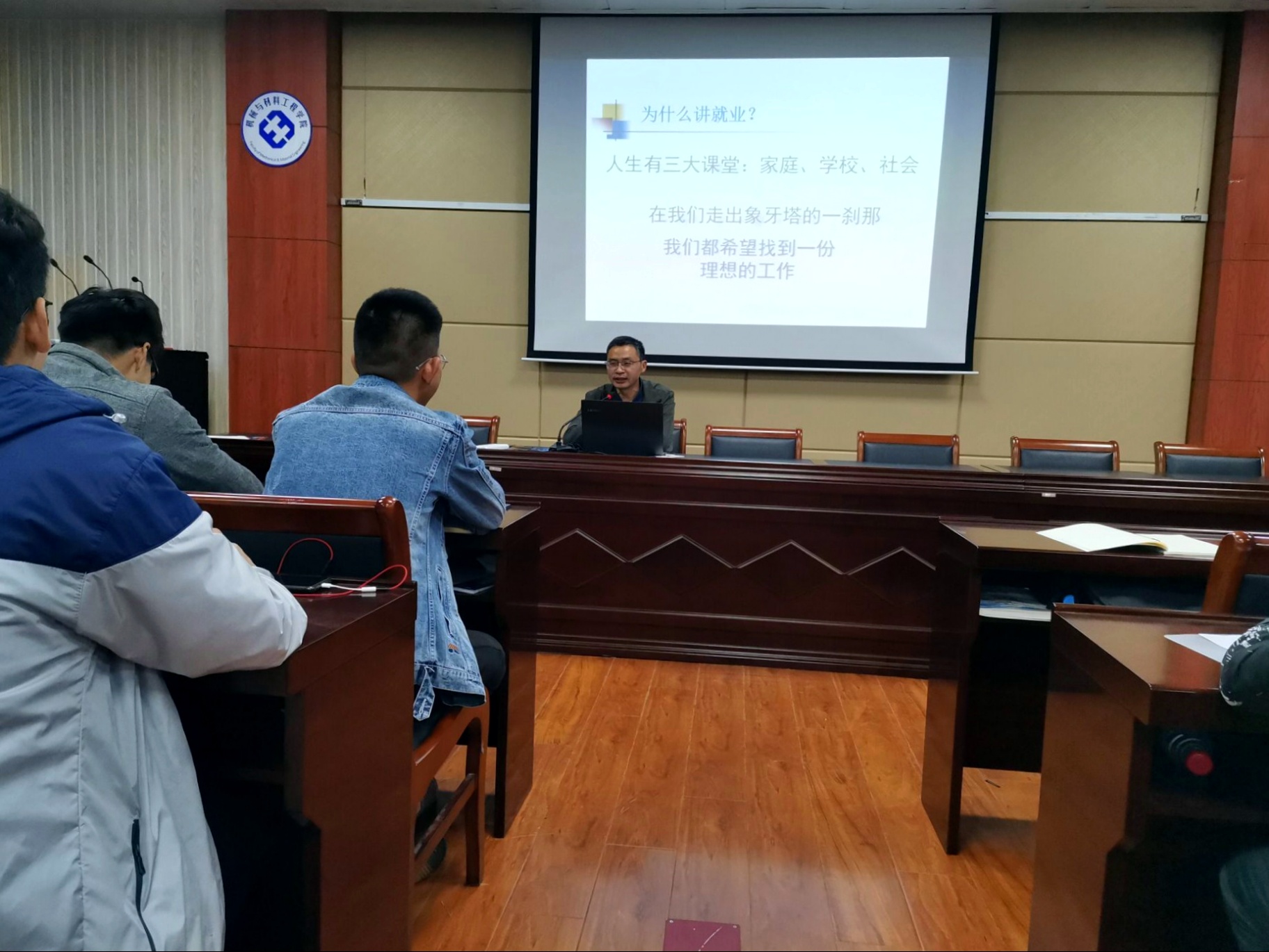 郁大同主任通过详实的数据从国家、学校和学院三个层面分析了当前大学生面临严峻的就业形势,介绍了国家就业创业政策,并为同学们全面系统讲授应该如何选择适合自己的工作。他强调,同学们要站在正确全面的自我认知上灵活就业,做好在校职业生涯规划,为未来顺利就业做好充分准备。