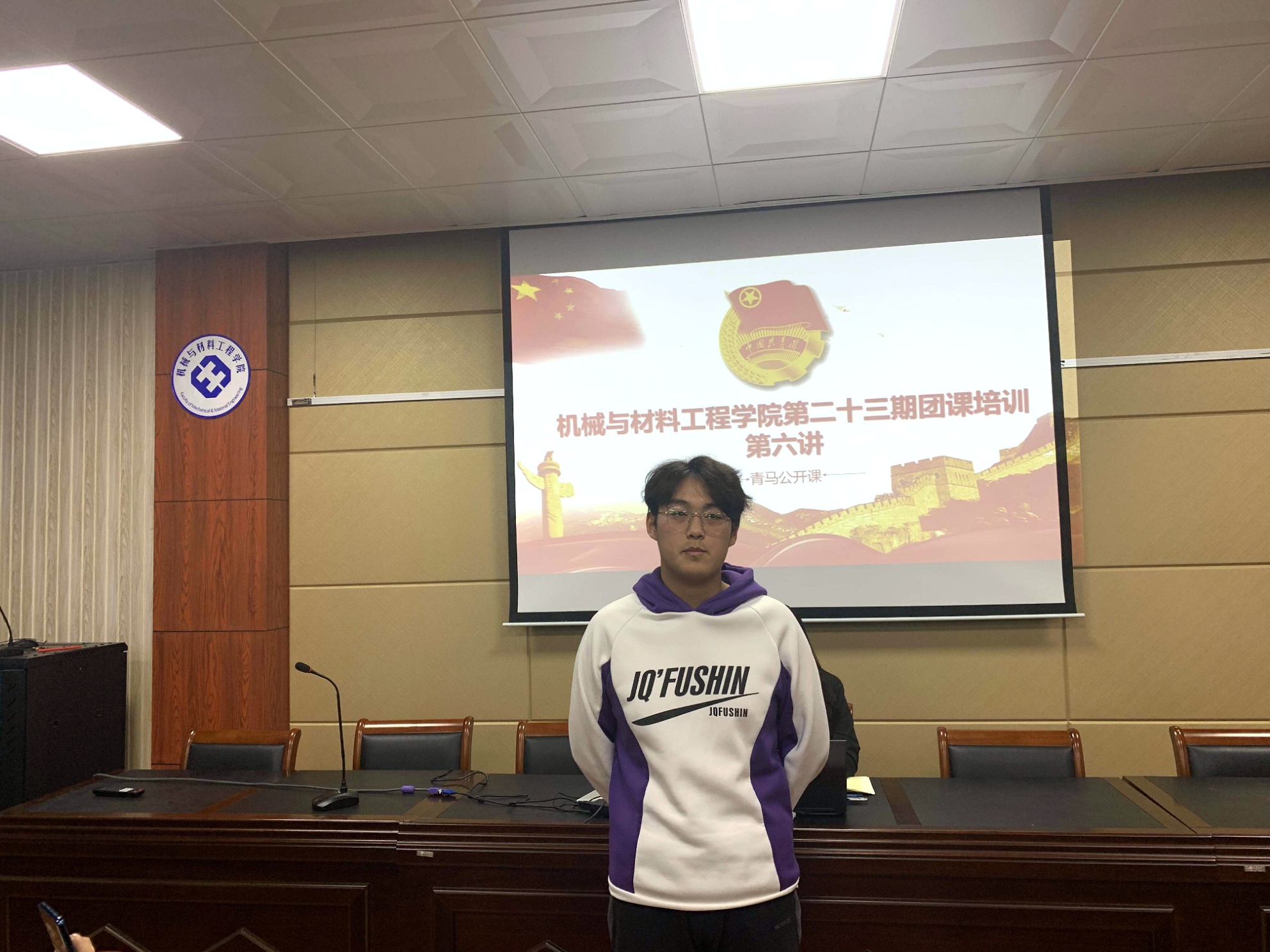 最后,学生代表马志鸿对本次公开课进行总结,她倡议,作为一名共青团员要忠于最初的理想信念,坚持正确的人生航向,对心志始终自信,对意志坚定不移,融入内心深处的全心全意为人民服务的根本宗旨。她就如何牢记使命、践行承诺,对同学们提出四点要求:一要旗帜鲜明讲政治;二要廉洁自律重操守;三要履职尽责敢担当;四要勤政务实做表率。