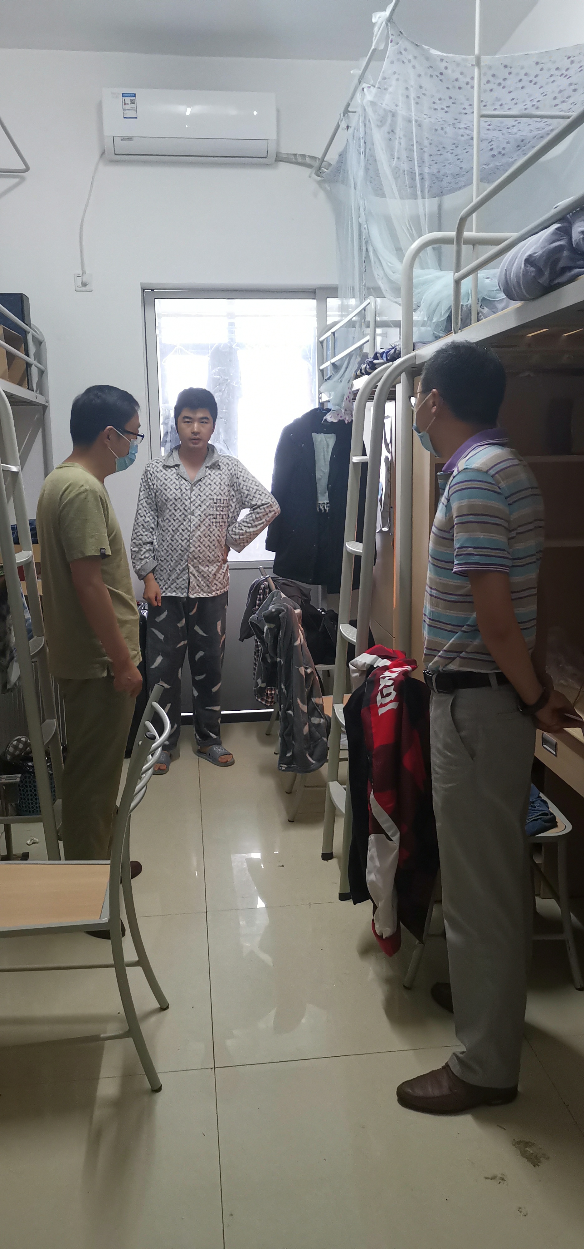 为深入了解我院暑期留校研究生宿舍卫生及安全情况,提高学生宿舍安全意识,7月3日上午,我院党委副书记李炜、学工办主任郁大同到相关学生宿舍进行了走访。
