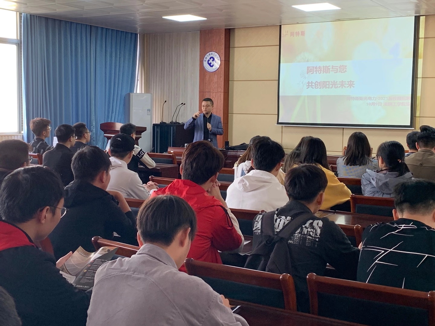 10月9日下午,机材学院邀请阿特斯阳光电力集团来校召开专场招聘会,机材学院及化工学院2017级相关专业同学参加会议。