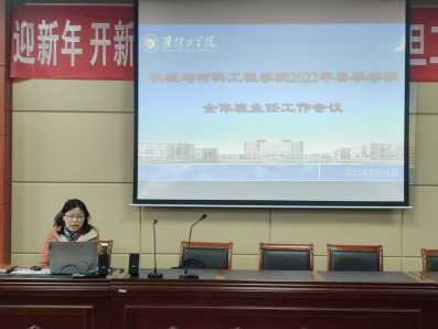 2月16号下午,机材学院在15401召开新学期班主任会议,学院党委书记马从兵、院长高荣、副书记王明霞、副院长朱为国、陈中和全体辅导员、班主任老师参加了会议,会议以线上线下相结合的形式进行。