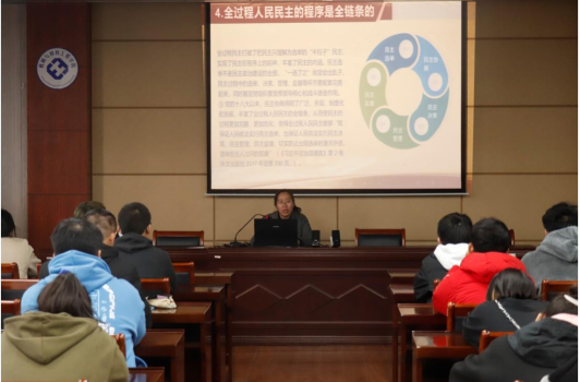 11月15日下午16:00,williamhill英国在15401开展“正确认识全过程人民民主”信仰公开课暨第二十九期团课第二讲。本次主讲人为马克思主义学院副院长张琳琳博士,各年级优秀共青团员共计85人参加了本次团课培训。