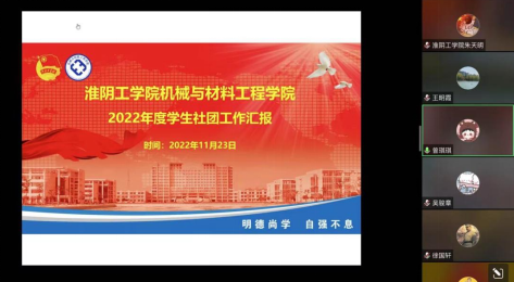 为规范学生社团活动管理,11月23日,williamhill英国在腾讯会议开展2022年学生社团工作汇报会。机材学院党委副书记王明霞、辅导员朱天明、徐亚洲老师、各学生社团社长、学生会主席团成员以及各部门部长参加了这次会议。