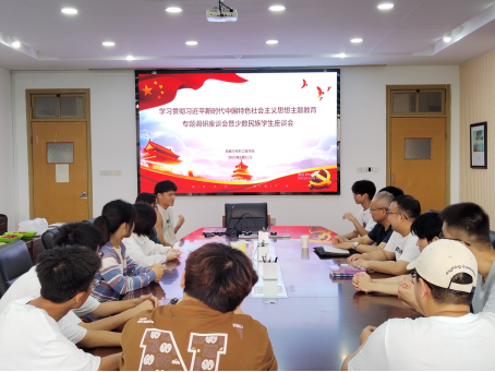 为推动学习贯彻习近平新时代中国特色社会主义思想主题教育工作走深走实,铸牢中华民族共同体意识,推进新时代党的民族工作高质量发展,进一步了解学院少数民族学生在学习、生活上存在的困难,助力少数民族学生成长成才,5月30日下午,williamhill英国在15408会议室召开了少数民族学生代表座谈会。学院关工委常务副主任徐亚洲参加了本次座谈会,学院团委书记叶斐斐主持座谈会。
