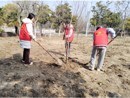 植树现场,大家挥锹铲土、培土围堰,分工协作、相互配合,每项工作井然有序。一锹土,播撒的是生机;一桶水,浇灌的是希望。树苗昂然挺立,形成了一道靓丽的风景线。