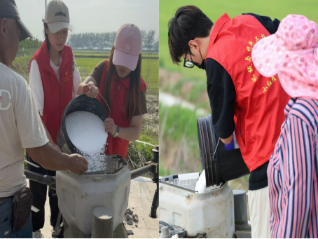 在技术指导员的监督下,志愿者们向无人机的药箱中添加肥料。他们认真地调整肥料和农药的数量和比例,确保无人机能够均匀地喷洒在作物上。通过专业人员的解说,他们了解到无人机每次装100斤化肥,一亩地撒20斤,可以控制每亩地撒少量,一天能洒100袋×100斤。