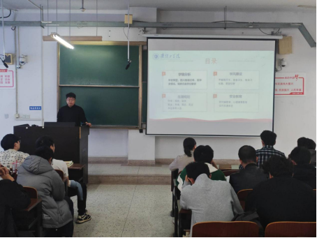 年级大会分三项展开,大会第一项,臧金鹏老师通过学情分析、学风建设、生涯规划和安全教育四个方面介绍了年级主要情况。第一,学情分析包括学业预警、四六级通过率、奖学金情况,良好的学风是学术成长的必要条件。第二,学风建设重点内容为宿舍卫生、早锻炼打卡、晚自习出勤及课堂纪律等,从日常点滴做起,共同营造积极向上的学习氛围。第三,谈及生涯规划,要早做打算,明确目标。第四,安全教育包括防范诈骗、心理健康和出行安全。