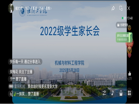 为深化家校协同育人,帮助家长全面了解学生升学就业形势,携手为学生成长发展助力,5月28日晚,机材学院通过线上视频形式召开2022级学生家长会。本次会议由学院学工办主任郁大同主讲,围绕就业形势分析与考研专项宣讲展开,吸引众多家长通过微信群链接云端参会。