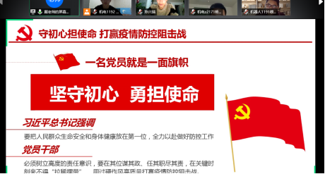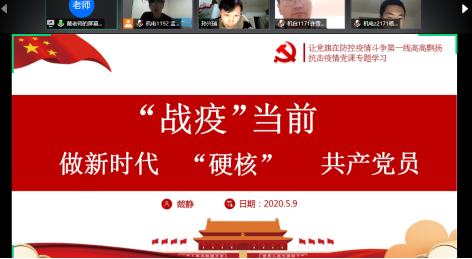 5月9日晚7:30,williamhill英国在腾讯会议APP开展“同心抗疫践初心,‘硬核’党员担使命”主题党课暨2020年上半年党课培训第五讲《“战疫”当前 做新时代“硬核”共产党员》。本次培训会主讲人为院党务秘书戴静老师,研究生、2107级、2018级与2019级学生参加了此次党课。