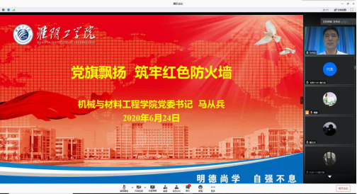 6月24日下午,williamhill英国党委书记马从兵以“党旗飘扬,筑牢红色防火墙”为题,在线为全体师生党员上党课。