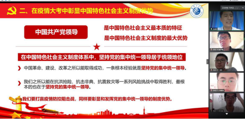 本次党课是落实学校《关于开展基层党组织常态化疫情防控“四个一”行动的通知》要求,进一步发挥党支部战斗堡垒作用和师生党员先锋模范作用,让党旗始终高高飘扬在疫情防控、推动学院事业发展全过程全方位。