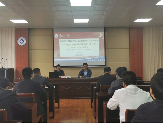 10月7日下午2:00,机材学院组织全体教职工在15401会议室学习《习近平谈治国理政》第三卷的内容,英国威廉集团党委常委、宣传部部长华学成教授作题为《新时代中国共产党人的思想旗帜与行动纲领——读<习近平谈治国理政>第三卷》的专题报告。学习会由院党委书记马从兵主持。