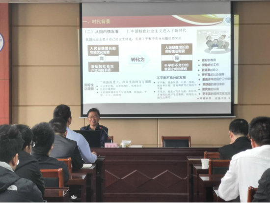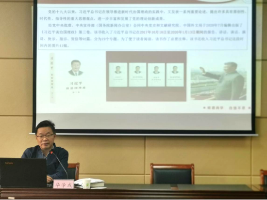 华部长从时代背景、主要内容、理论品质、重大意义四个角度,深入解读了《习近平谈治国理政》第三卷的精神实质和丰富内涵。华部长指出全体教师要提高政治站位,充分认识开展《习近平谈治国理政》第三卷学习的重大意义,系统掌握贯穿其中的马克思主义立场观点方法,增强“四个意识”、坚定“四个自信”、做到“两个维护。