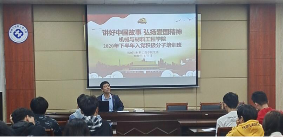 为使广大学生了解习近平总书记提出的重大思想观点,丰富对党的理论创新成果的认识,10月7日晚7:00,williamhill英国于15401开展“讲好中国故事,弘扬爱国精神”主题党课暨2020年下半年党课培训第三讲,本次培训主讲人为机材学院党委书记马从兵,本次党课题目为”学习习近平新时代中国特色社会主义思想——做新时代有为青年“。研究生、2018级、2019级入党积极分子参加了本次培训。