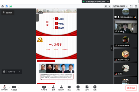 本次课程围绕“为何学、学什么、怎么学”三个方面展开。罗泽如老师通过多层次的解答问题明确党史学习的重要意义。罗泽如老师的讲述增加了同学们的学习动力和入党积极性。