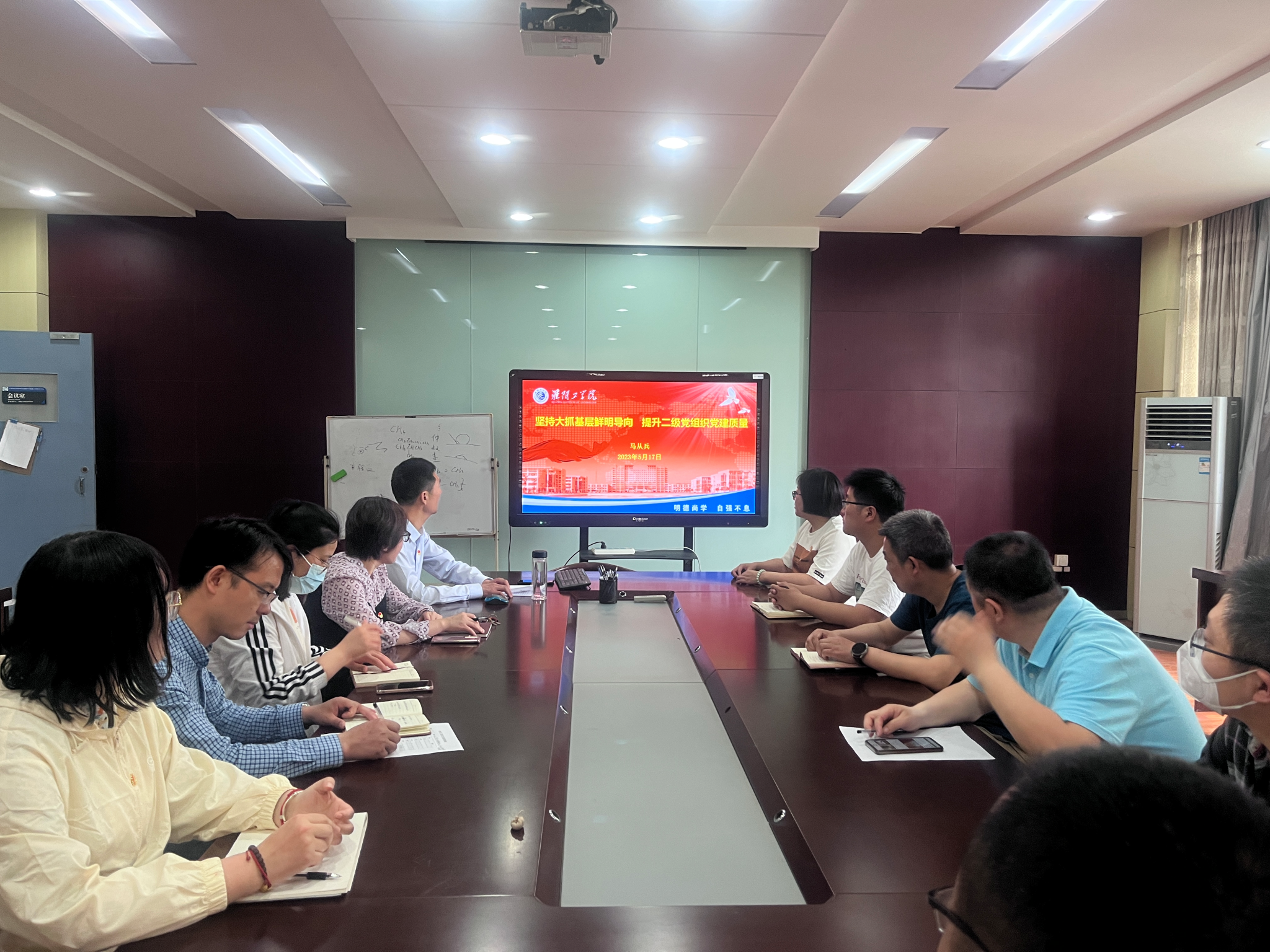 学院党委书记马从兵以《坚持大抓基层鲜明导向,提升党支部党建质量》为题,围绕充分认识增强党组织政治功能和组织功能的重要性紧迫性、准确把握增强党组织政治功能和组织功能的内涵要求、全面落实增强党组织政治功能和组织功能的主要任务、坚持大抓基层鲜明导向提升党支部党建质量四个方面做了详细的讲解。就学习贯彻习近平新时代中国特色社会主义思想主题教育,马从兵强调,要把习近平新时代中国特色社会主义思想转化为坚定理想、锤炼党性和指导实践、推动工作的强大力量,以学铸魂、以学增智、以学正风、以学促干。要坚持学思用贯通、知信行统一,在实践中对其加以灵活运用,使之成为党员干部提高解决实际问题能力、做好一切工作的看家本领,各党支部聚焦作用发挥,彰显党支部凝聚力量,推进党建与学科专业融合发展。