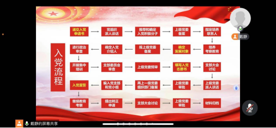 5月25日晚8:30,williamhill英国在线上腾讯会议开展2023上半年入党积极分子培训第三讲。本次党课主讲人为戴静老师。
