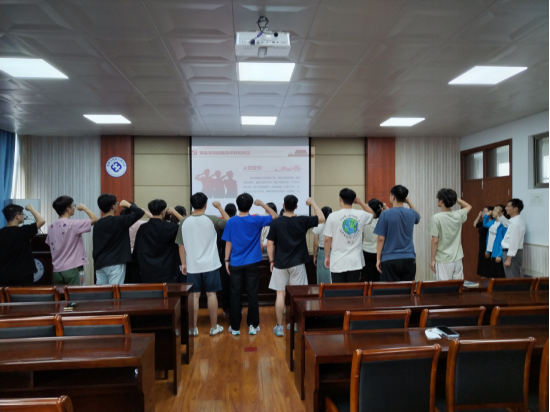 仪式开始,与会人员全体起立,仪式在庄严的《国际歌》声中拉开帷幕;接着,戴静老师宣读了上半年新发展的钱苏梦等23名预备党员名单。宣读完毕后,党支部举行了新发展党员入党宣誓仪式,在新党员代表的带领下,全体新发展党员面向党旗,高举右手,庄严宣誓。