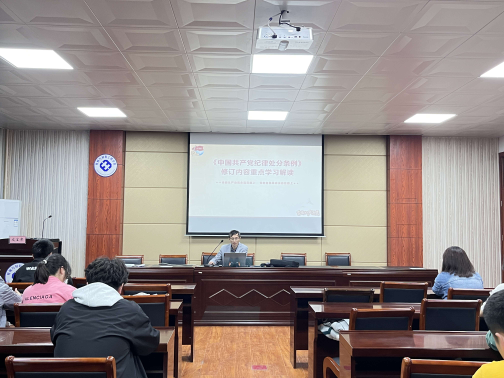 4月18日晚,williamhill英国在学院会议室召开专题学习会,学习新修订的《中国共产党纪律处分条例》。此次学习会由学院党支部书记罗泽如老师主持,全体学生党员积极参与。