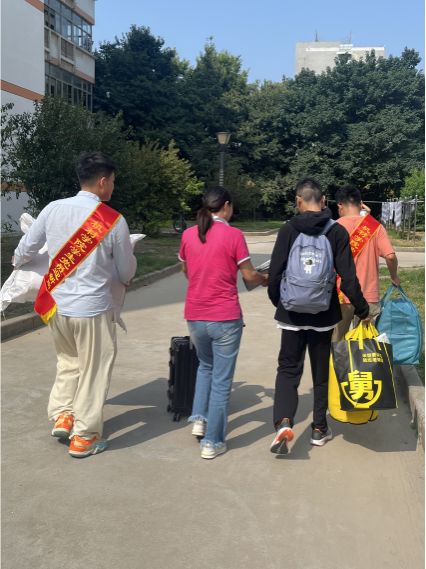 一季金秋时,一年新生至。为做好2024年迎新期间新生入学各项工作,充分发挥党员先锋模范作用,我院设置学生党员迎新服务点、学生党员示范岗,为新生提供校园环境介绍、报到指引、信息采集、行李搬运等贴心服务。学生党员们活跃在各个迎新工作点,以饱满的激情投入到迎新工作之中,让新生们感受到大家庭的温暖。