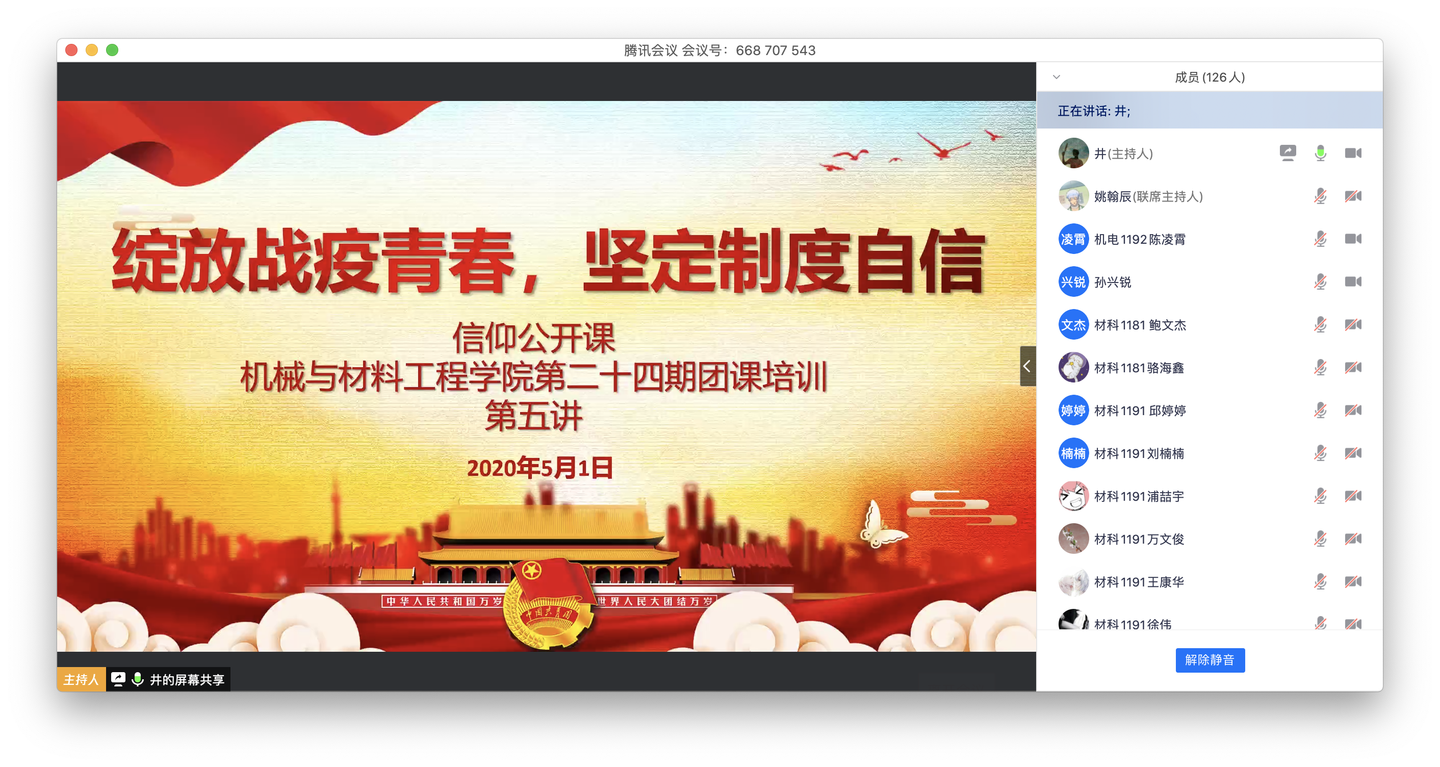机材学院开展“绽放战疫青春 坚定制度自信”主题信仰公开课暨第二十四期团课培训第五讲