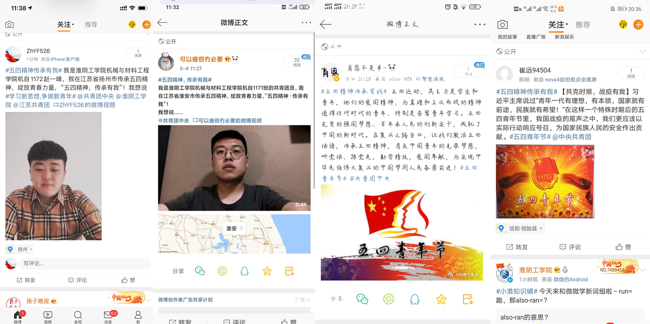 在网络话题讨论活动中,教师干部凝练五四精神内涵,结合图片和视频,发起 #五四精神传承有我#微博话题讨论,受到广泛转载和点赞。