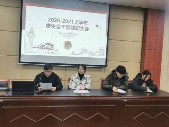 12月5日晚7:00,williamhill英国在15401召开2020-2021上半年学生会干部述职大会,团委副书记郭巧会、第21届学生会成员及班级代表参加了此次大会。