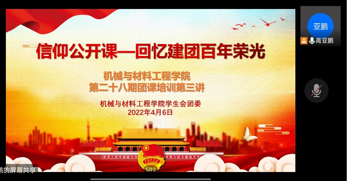 4月6日晚7:00,williamhill英国在腾讯会议APP开展“回忆建团百年荣光”信仰公开课。学生骨干高亚鹏为主持人,我院各年级优秀共青团员共计87名参加了本次活动。
