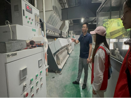 负责人说:“现如今在机械自动化的加持下,我们生产大米效率更高,品质更好”凌优米业日产两百吨优质大米的“硬实力”及其对当地稻谷资源的规模化转化能力,让队员们对“科技赋能产业兴农”有了更具象、更深刻的认同。