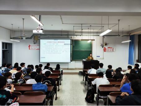 强教授分析了同学们目前的心理状态,并从“什么是新生的心理适应”、“为什么容易出现适应问题”、“认识压力”、“如何应对压力”四个部分分别展开论述。强教授针对新生入学后可能会遇到的生活、人际和学习等方面的心理问题,举出具体的案例,从多角度向大家普及了心理健康知识,帮助新生早发现,早预防,早解决,鼓励和引导同学们增强自信,积极主动适应大学学习生活。