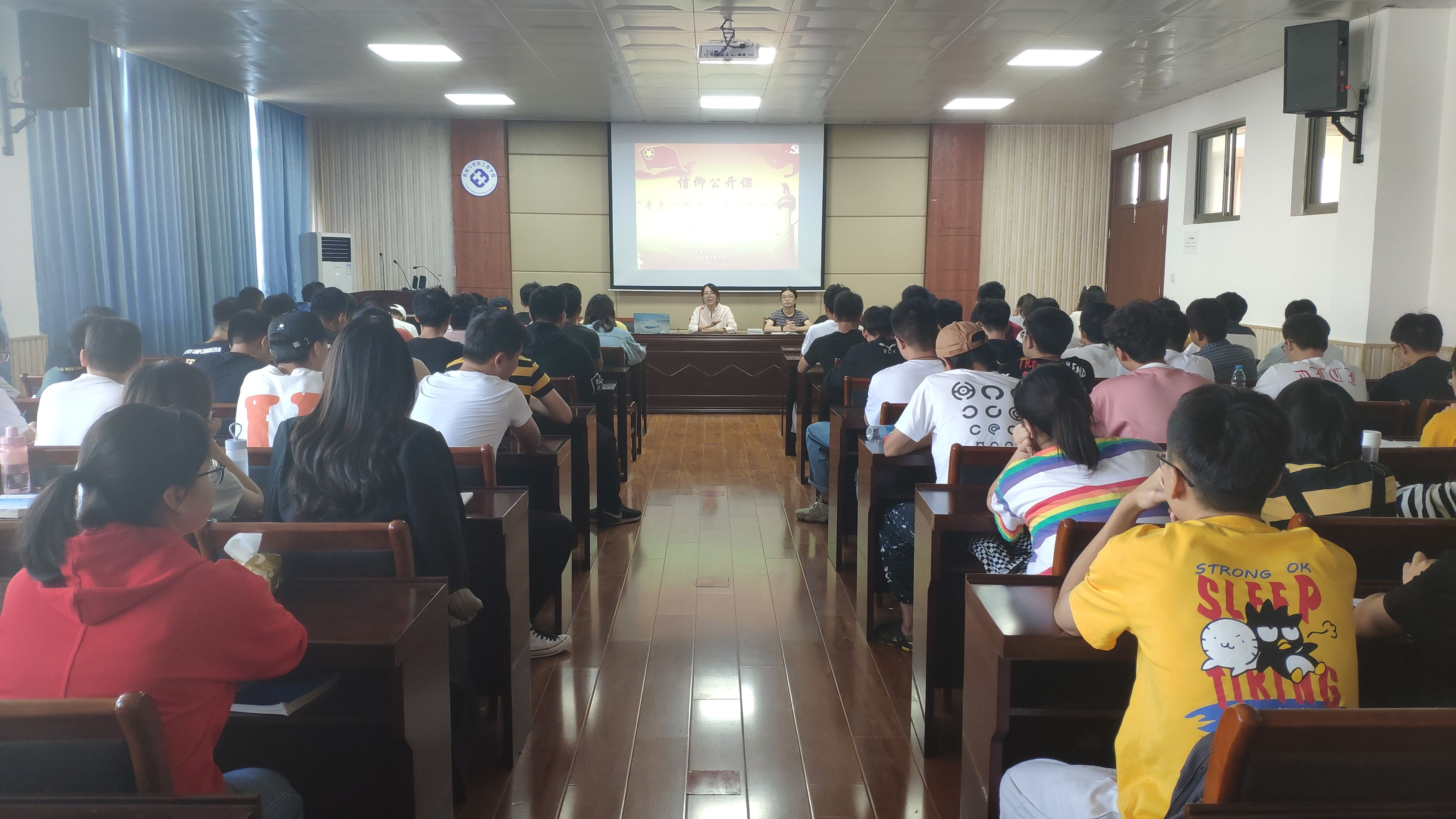 机材学院“星与心源”和“播种希望”两支暑期社会实践团队代表以PPT和微视频的形式分别介绍了他们社会实践前期筹备、开展过程以及取得的实践成果。团队分享结束后,进入提问互动环节,现场反响热烈,同学们针对社会实践中的实际困难、解决途径以及收获感悟等方面进行提问,两支团队代表许旋、高虎山和王鑫的精彩回答博得阵阵掌声。
